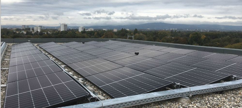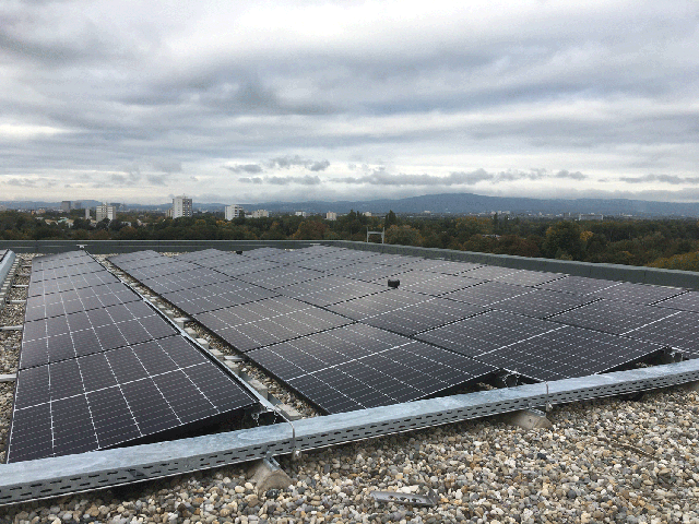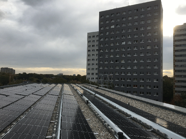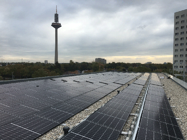 Auf zwei Kiesdächern des Studentenwohnheims in Frankfurt am Main wurden Solarstromanlagen mit Longi Modulen und Speicher installiert.