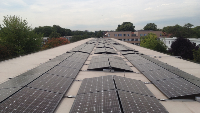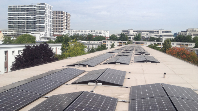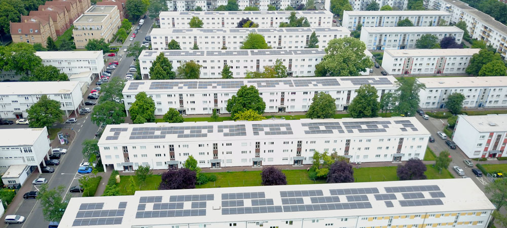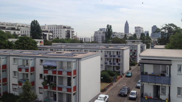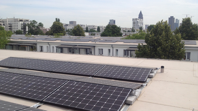 In der Stadt Frankfurt am Main entstehen in drei Bauabschnitten auf insgesamt 45 Gebäuden Solarstromanlagen für zwei Wohnquartiere.